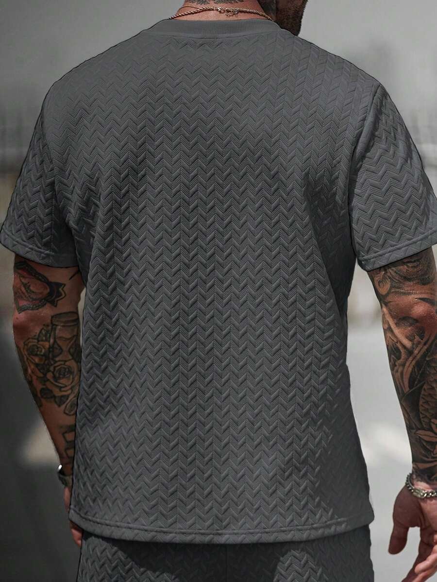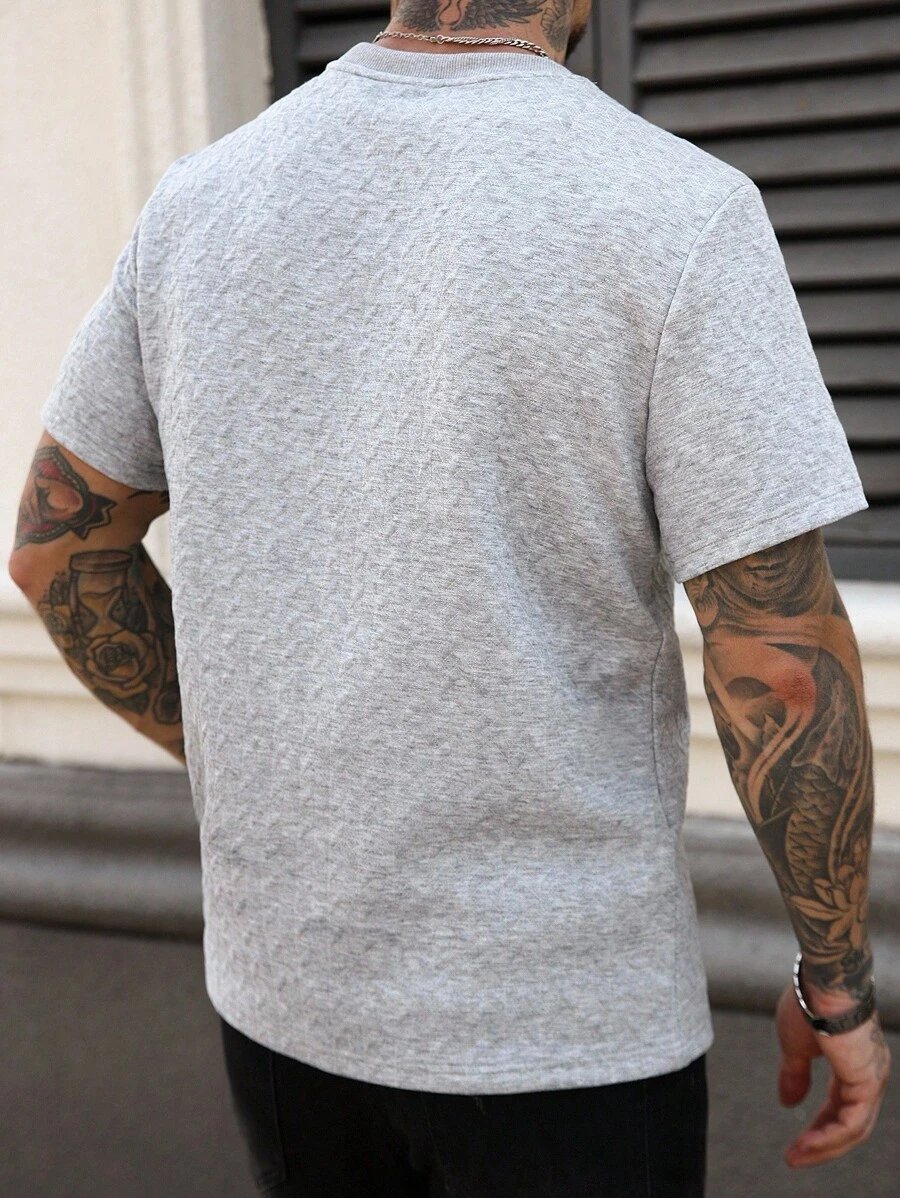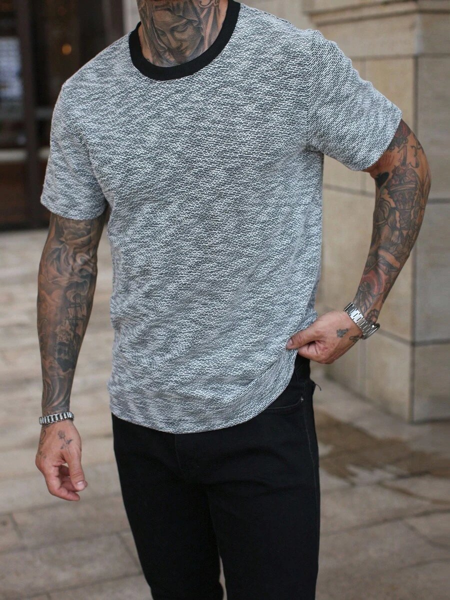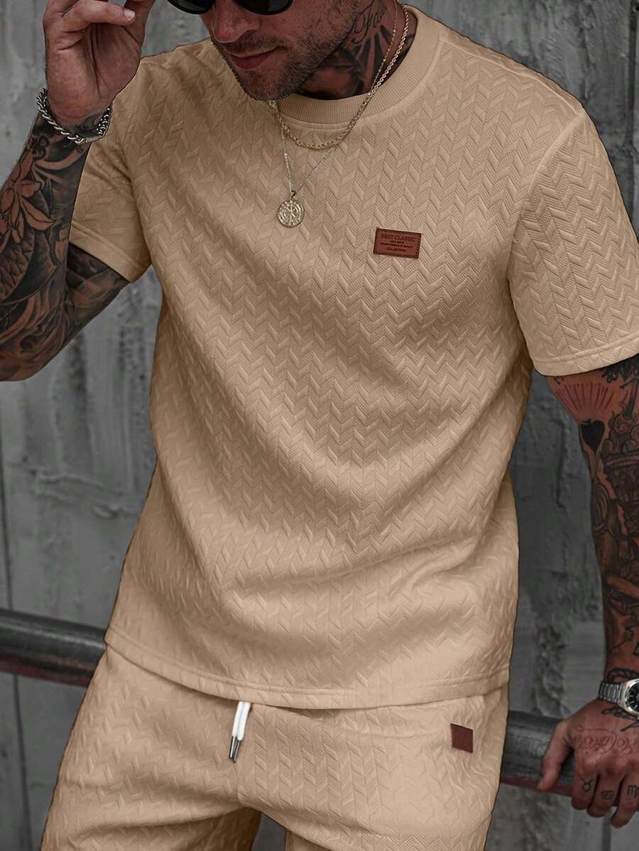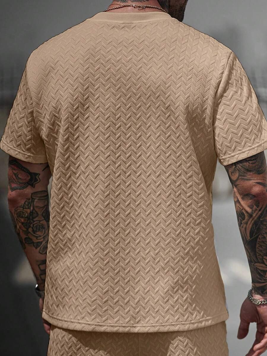 Manfinity CasualCool Men’s Summer Jacquard Ribbed Collar Short Sleeve T-Shirt, Fine Gift For Boyfriend Or Husband,Very Suitable For Daily Casual Wear In Summer, Suitable For Seaside Vacation, Fashionable And Versatile Item Men Casual Short Beige Sleeve T-Shirt