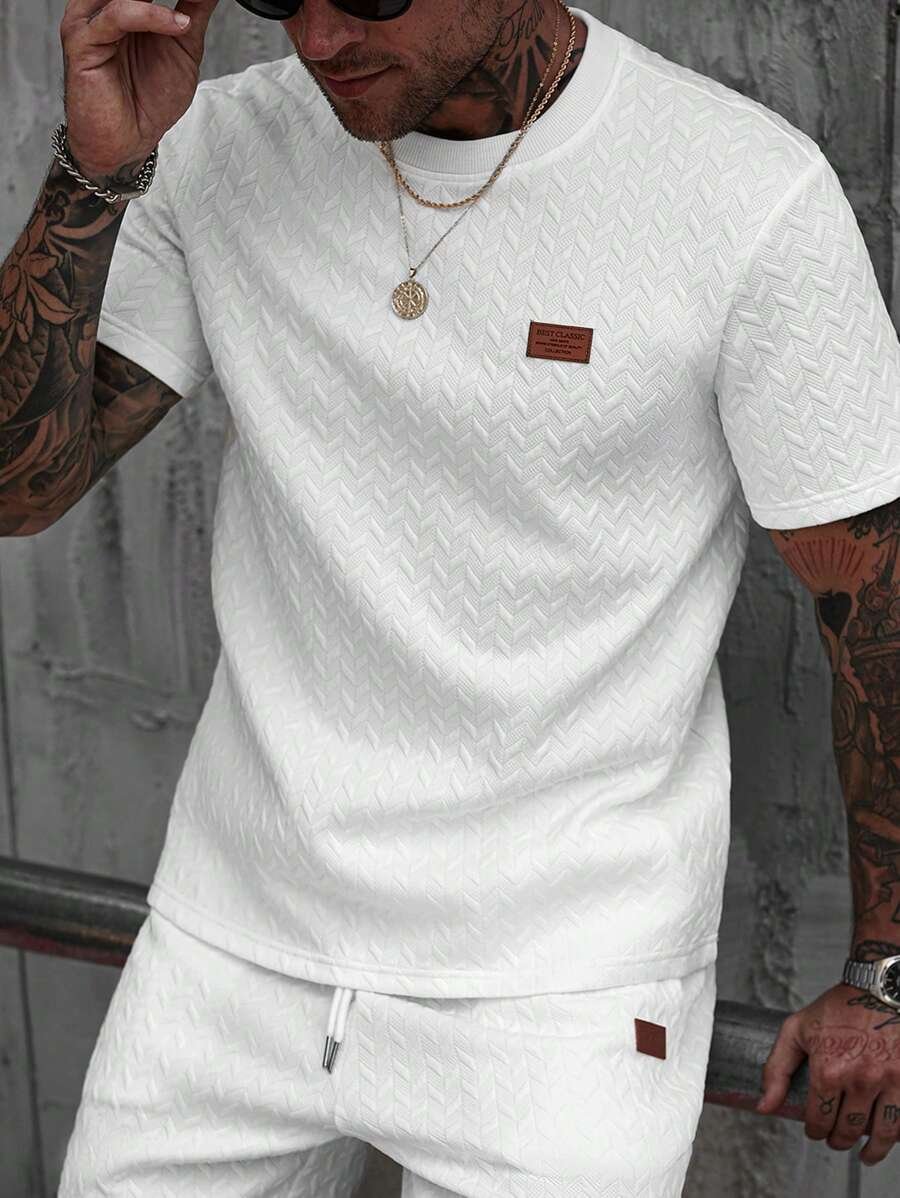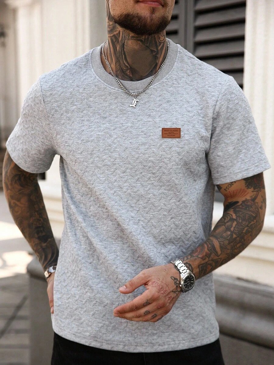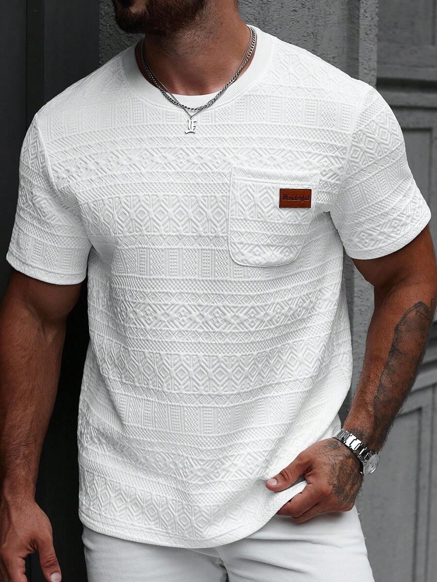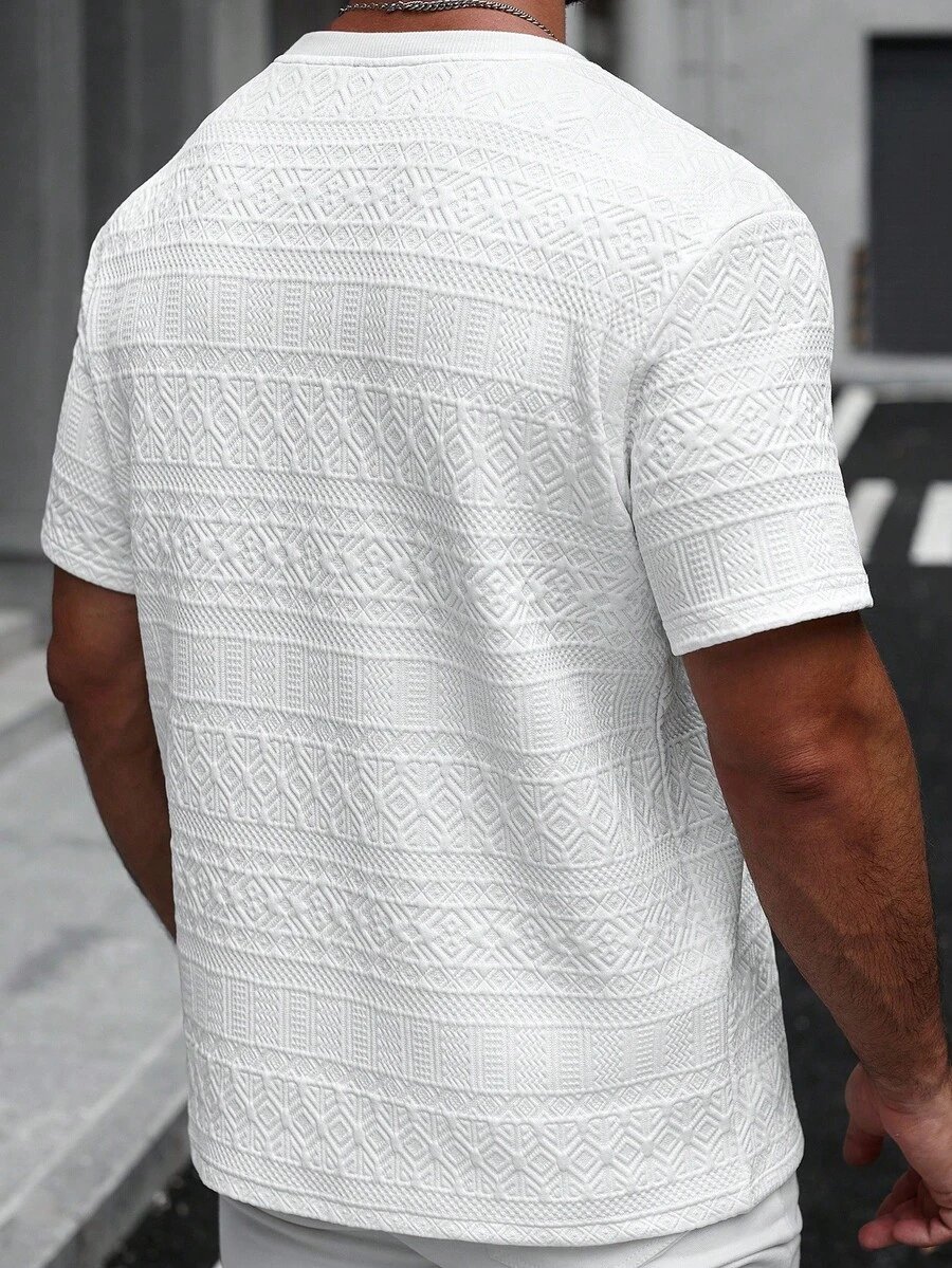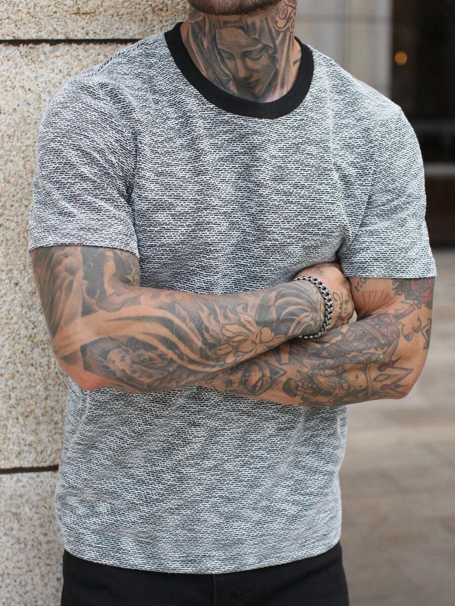 Manfinity CasualCool Men’s Summer Jacquard Ribbed Collar Short Sleeve T-Shirt, Fine Gift For Boyfriend Or Husband,Very Suitable For Daily Casual Wear In Summer, Suitable For Seaside Vacation, Fashionable And Versatile Item Men Casual Short Beige Sleeve T-Shirt