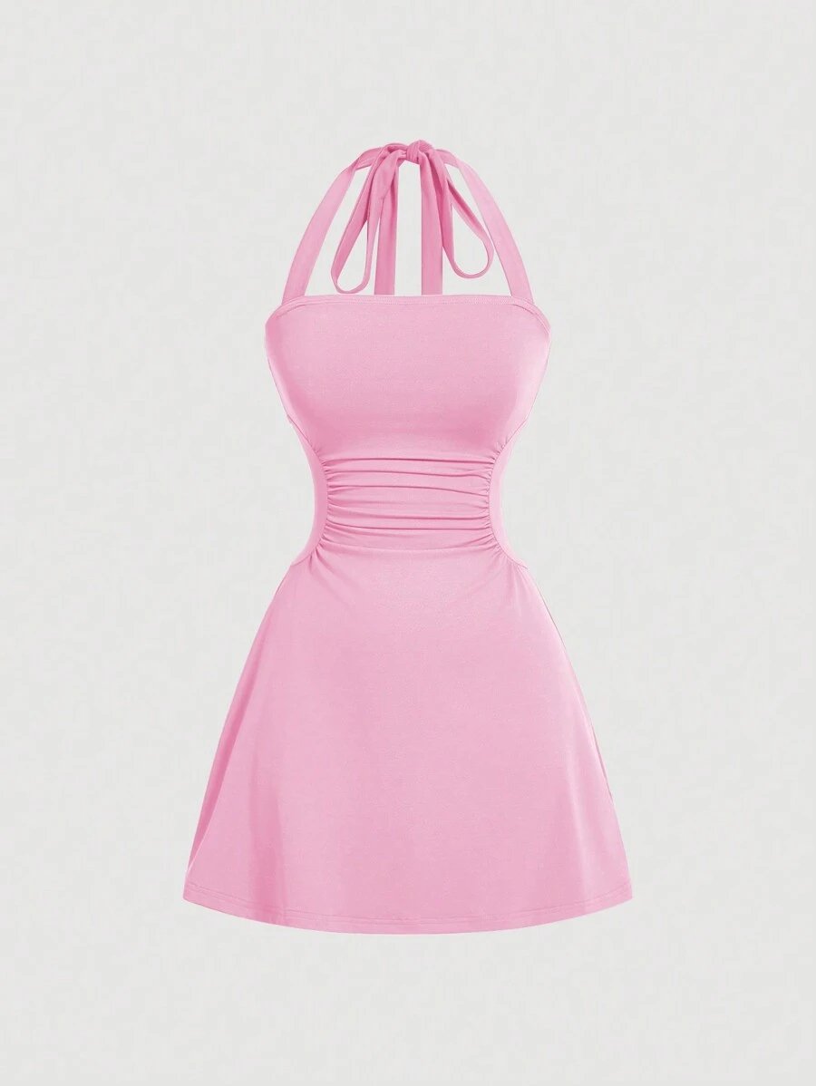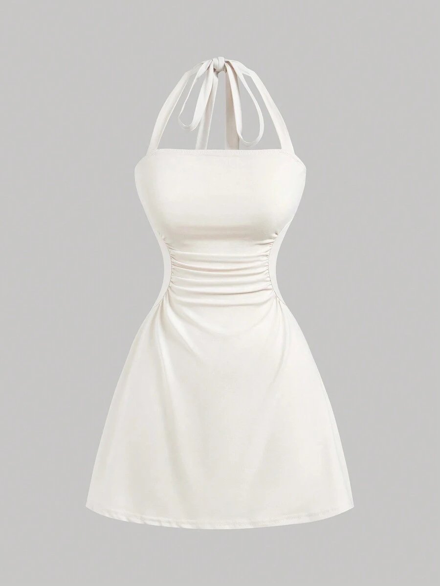 Women’s A-Line Waisted Halter Dress,Summer Dresses For Women,Tea Party Dress,White Graduation Dress